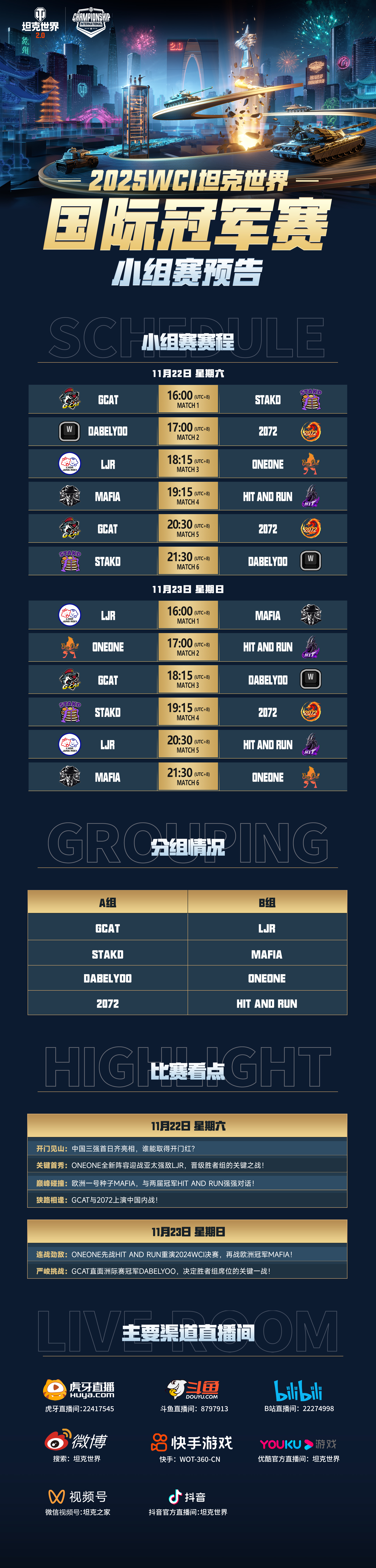 2025WCI坦克世界国际冠军赛战火点燃!八支世界顶尖战队集结苏州,争夺至高荣誉与160万元总奖金!11月22日-23日16:00起,小组赛全球直播,线上见证精彩对决!11月29日-30日13:00起,淘汰赛苏州主场馆巅峰决战,线上线下同步观战,共同见证王者诞生!