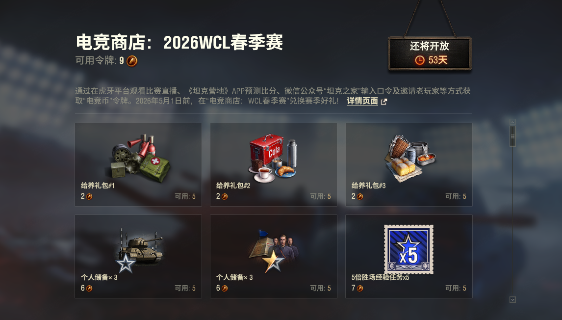 此外,您还可在微信公众号“坦克之家”输入口令、参与官网赛事及新兵福利、回流福利和邀请老玩家等方式获取更多“电竞币”!兑换多款2D风格以及V-VII级金币坦克!参与坦克营地APP预测集卡活动还可直接掉落VIII级金币坦克!